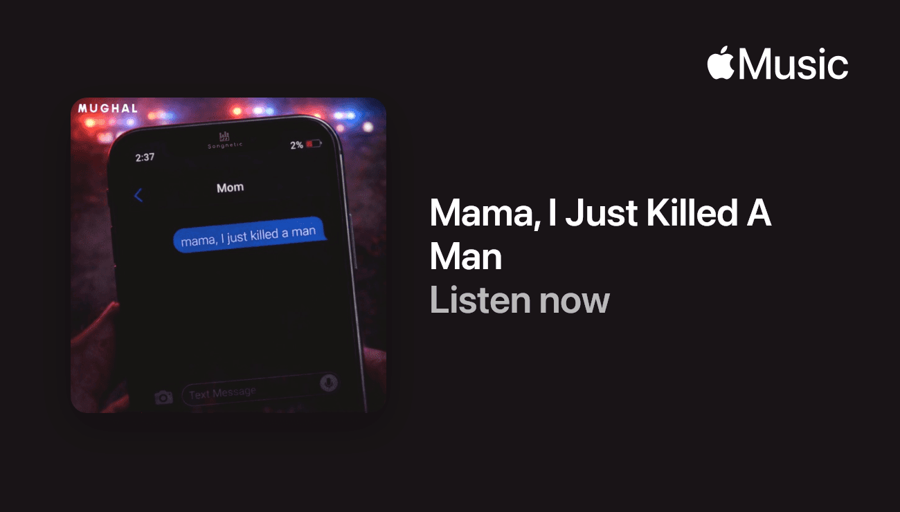Built like a film scene you can hear, Mama I Just Killed a Man, designed for sync placements and radio, moody, emotional, and visual.